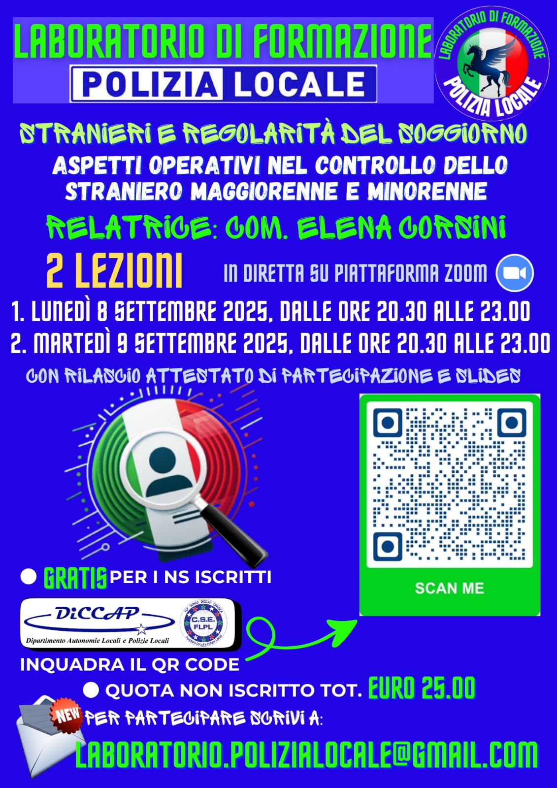 Giornata di Formazione per la Polizia Locale 8 e 9 settembre 2025 su piattaforma ZOOM