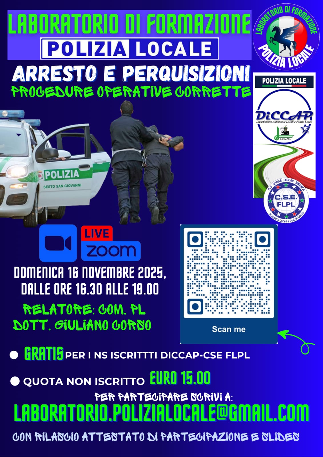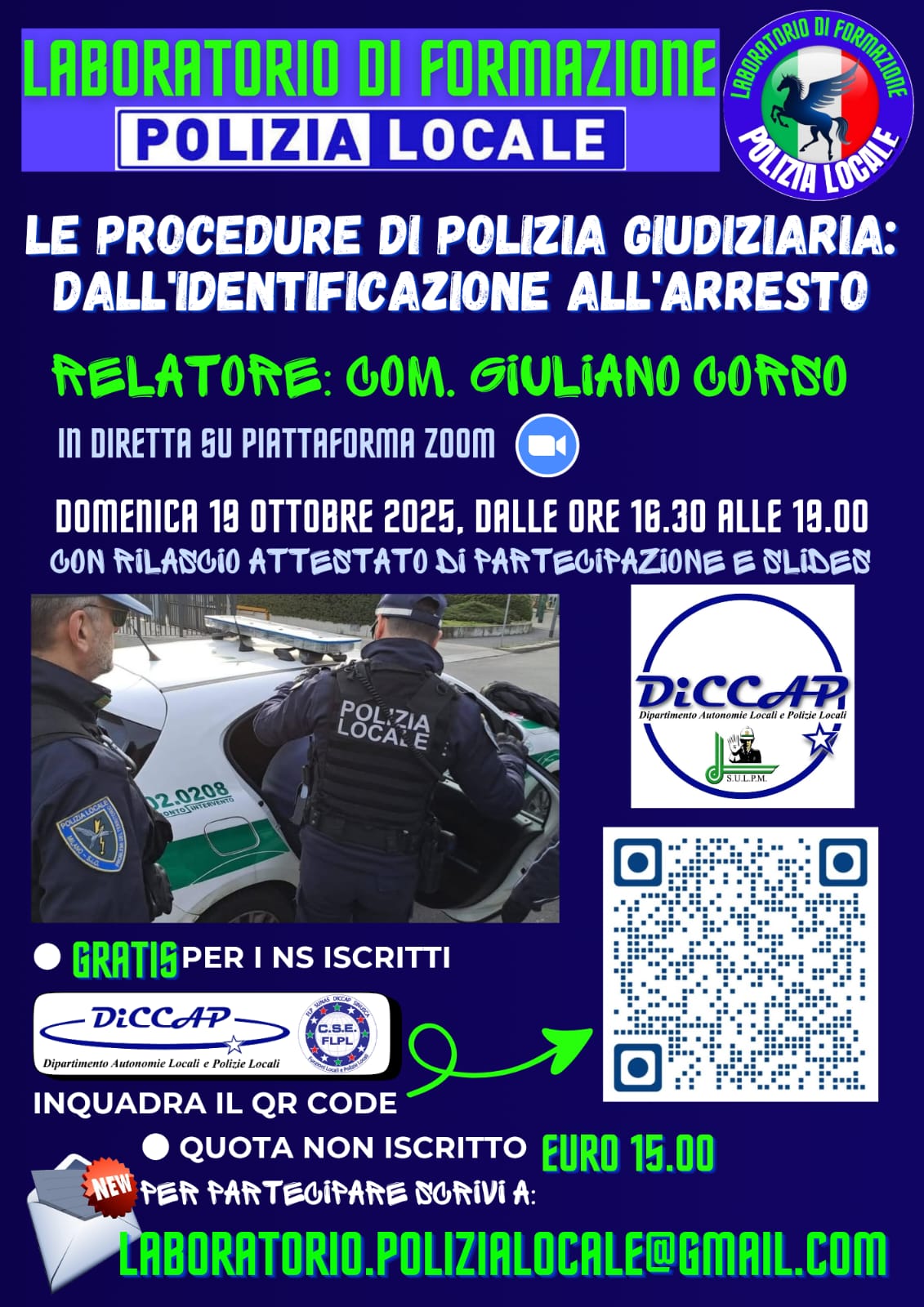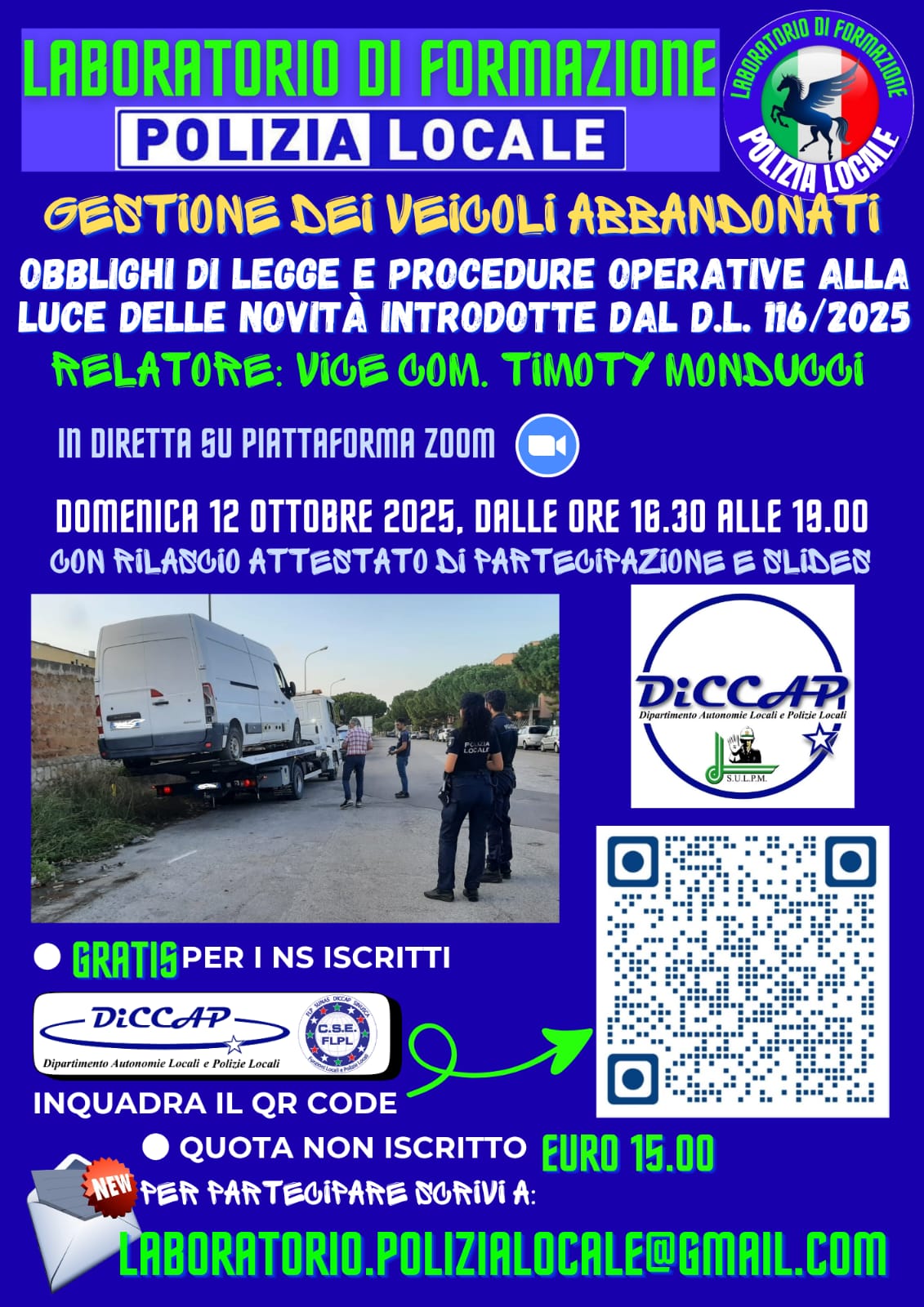 Giornata di Formazione per la Polizia Locale 15 giugno 2025 su piattaforma ZOOM