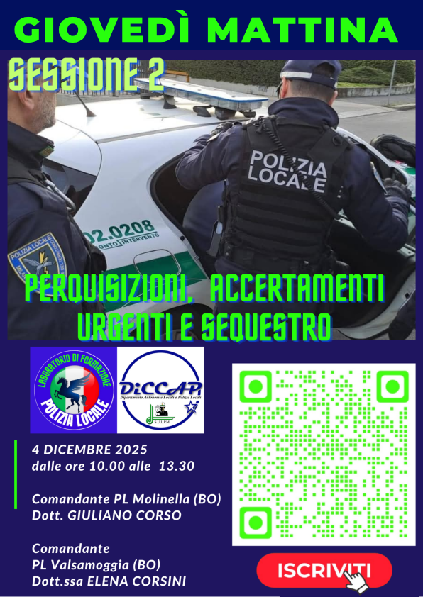 Giornata di Formazione per la Polizia Locale 17_20_dicembre 2024 su piattaforma ZOOM