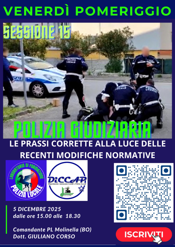 15 DICEMBRE 2023 - LA POLIZIA GIUDIZIARIA PER LA PATTUGLIA: LE GIUSTE PRASSI PER OPERARE IN SICUREZZA