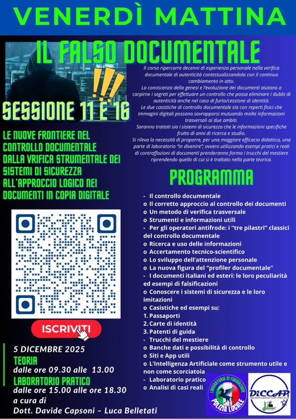 14 DICEMBRE 2023 - IL FALSO DOCUMENTALE: DAL CONTROLLO ALL'ATTIVITA' DI PG