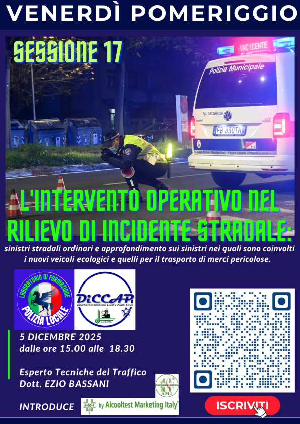 15 DICEMBRE 2023 - INFORTUNISTICA STRADALE: IL RILIEVO DELL'INCIDENTE STRADALE E L'ASSUNZIONE DELLE FONTI DI PROVA